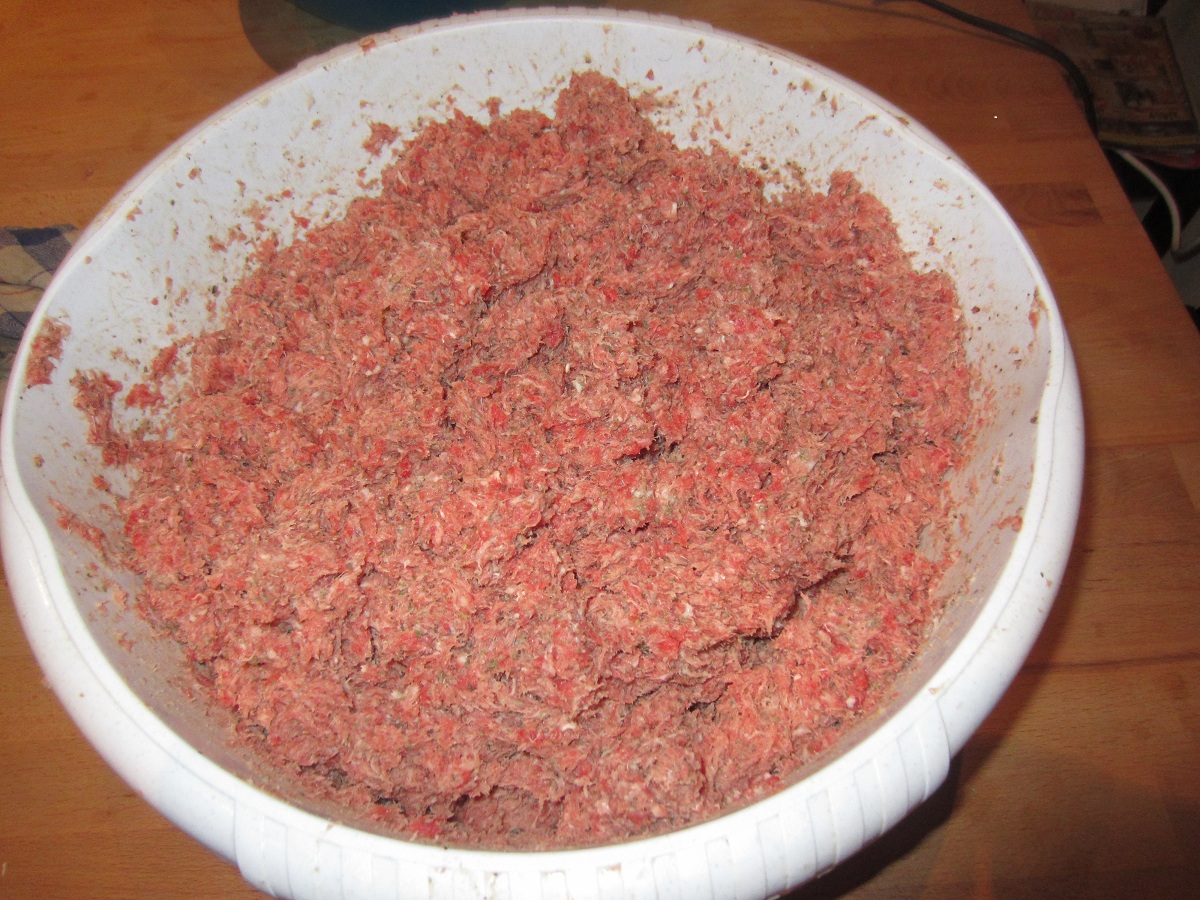 Den Rest gewolftes mit dem „Kutterbrei“ gut vermengen und