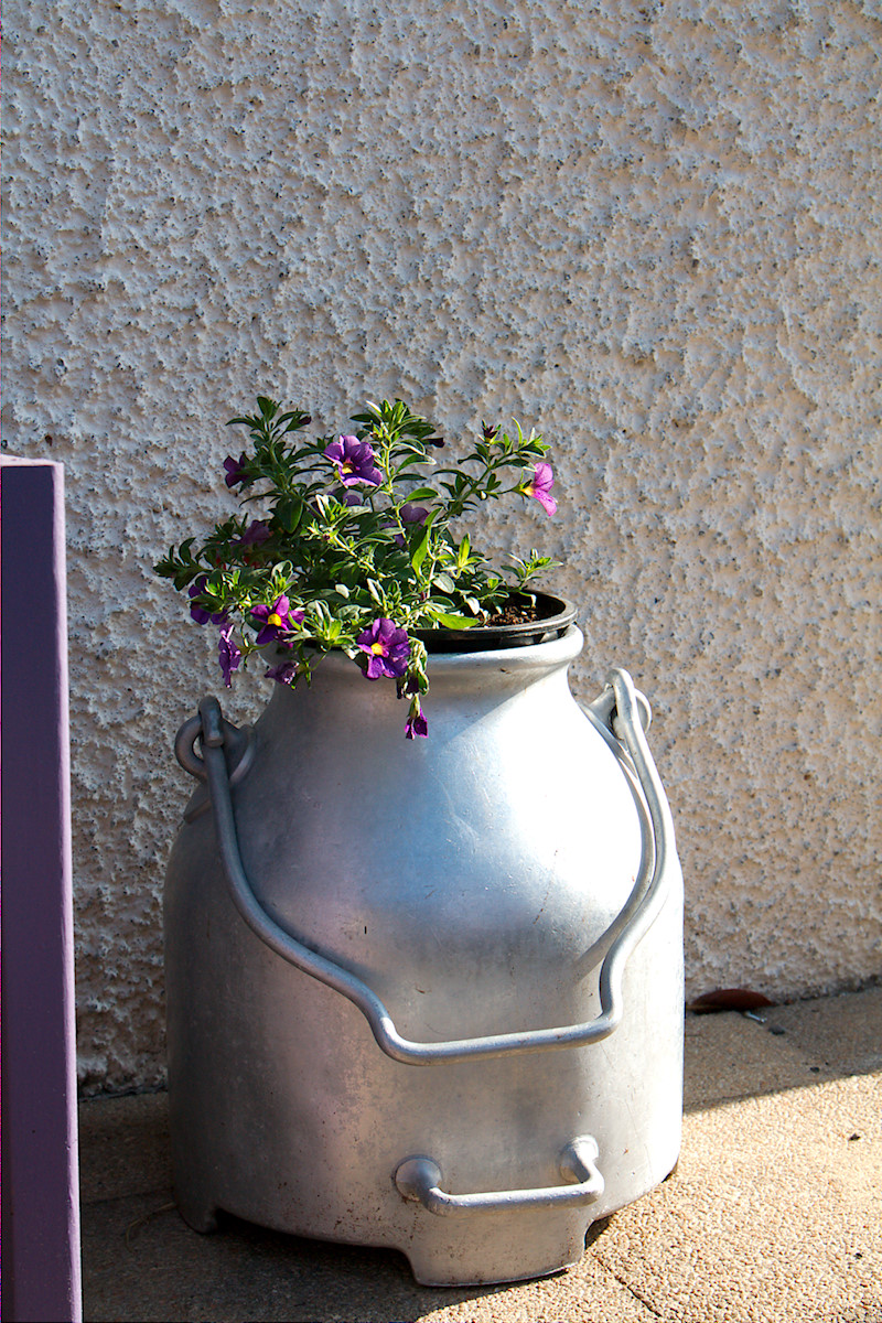 - Milchkanne mit Petunien