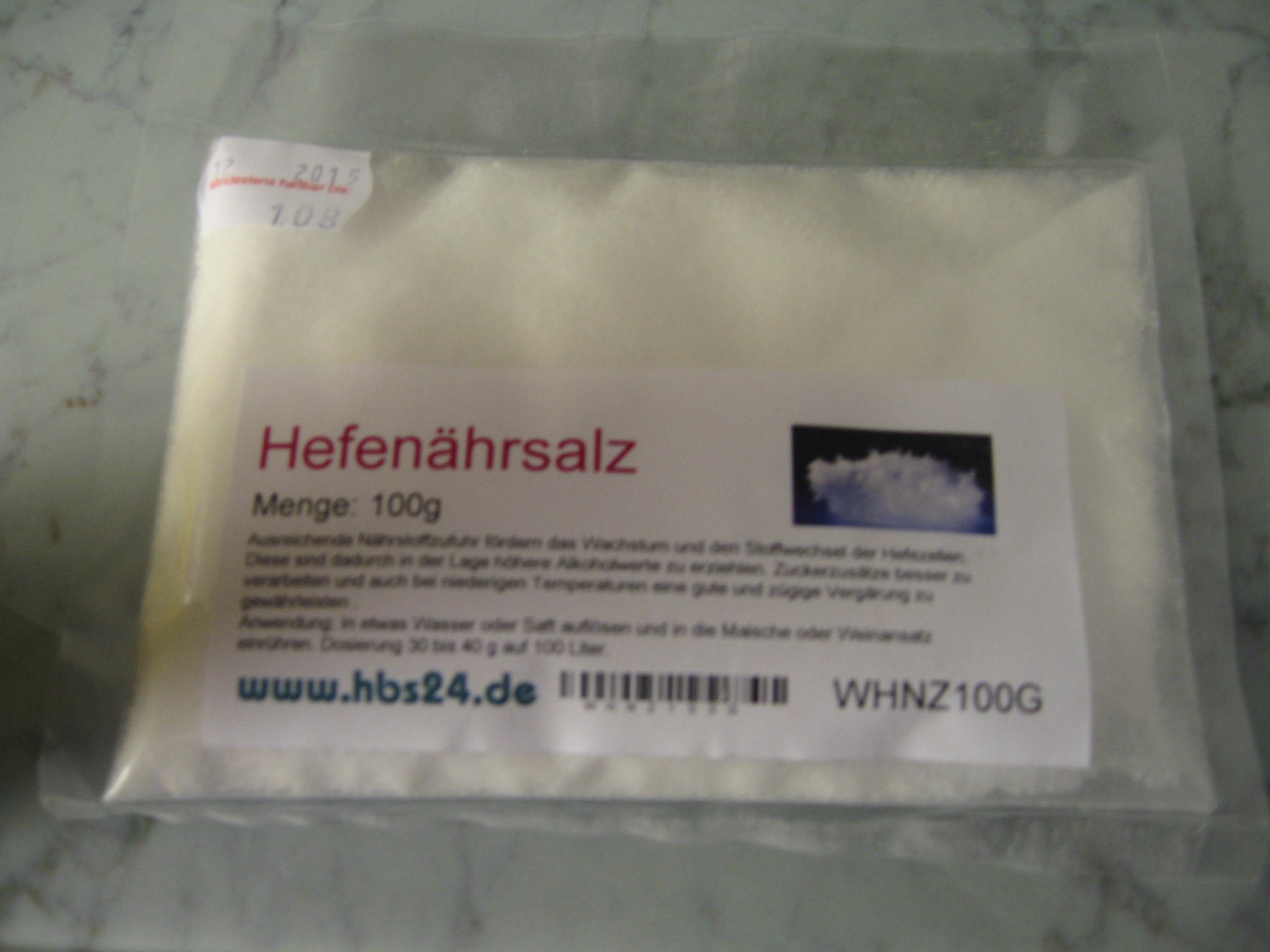 Antigeliermittel, Reinzuchthefe Rotwein, Hefenährsalz