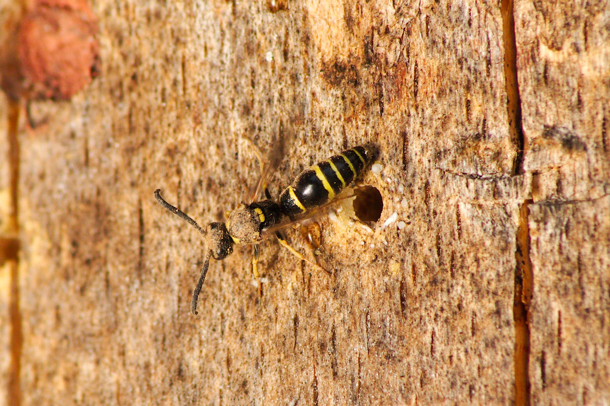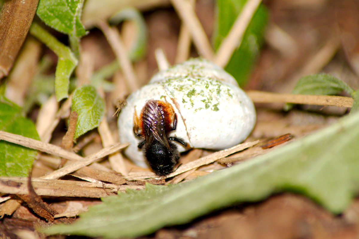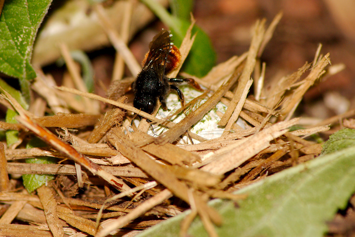 Ich hatte hier letztes Wochenende die Ehre einer Osmia Bicolor beim Netzbau zuzusehen.