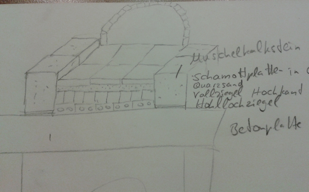 Aus einen Umbau eines freundes habe ich noch ca.50 ca. 80 Jahre alte Hohllochziegel, die eine erste Dämmschicht bilden sollen. Darüber plane ich eine Schicht Vollziegel (liegen bisher als Kantenstein im Garten und kommen raus) als wärmespeicher. Die Backfläche wir sehr wahrscheinlich ausSchamottplatten gelegt, da ich als Geologe zwar zwangsläufig auf Natursteine stehe, Ich aber oft gelesen habe das Granit und ähnliches splittert.