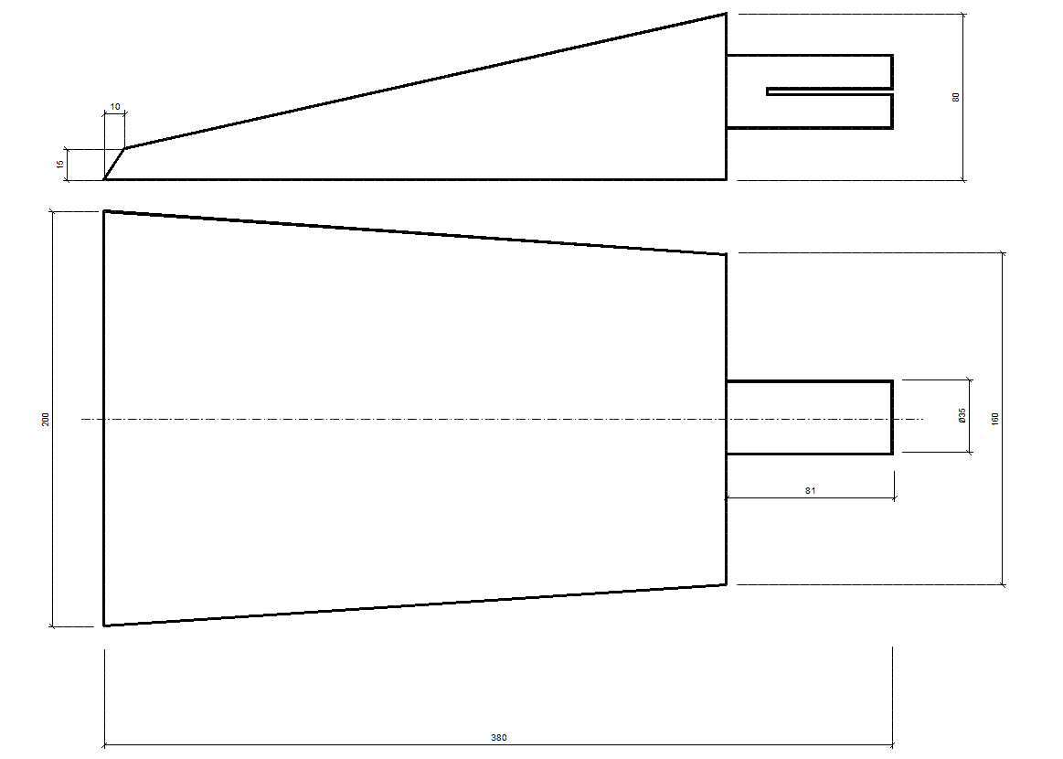 Hier nun die Zeichnung mit den Maßen zur Schaufel.