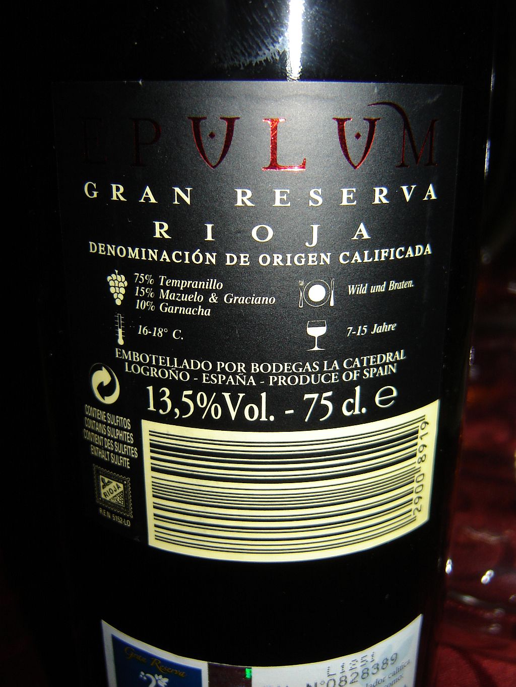 Ich bin nicht der wirkliche Rioja Trinker. Die Weine sind mir sehr oft zu holzlastig und hart. Habe den Epulum auch schon verkostet und er war ganz anständig kann ich mich erinnern. Gekauft habe ich ihn, weil mir damals das Etikett aufgefallen war - ohne Witz. Zumindest ist er nicht mehr so gemacht wie die Klassiker aus dem Norden.