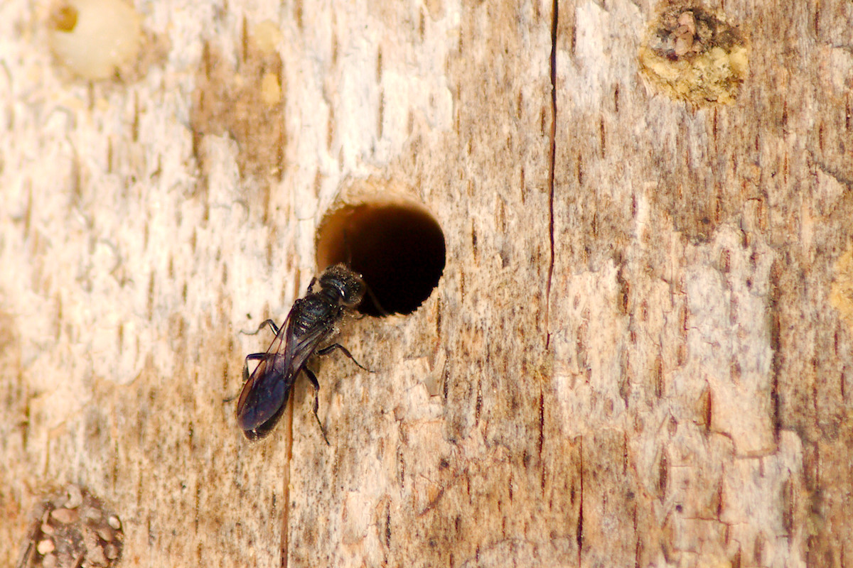 Ich hatte hier letztes Wochenende die Ehre einer Osmia Bicolor beim Netzbau zuzusehen.
