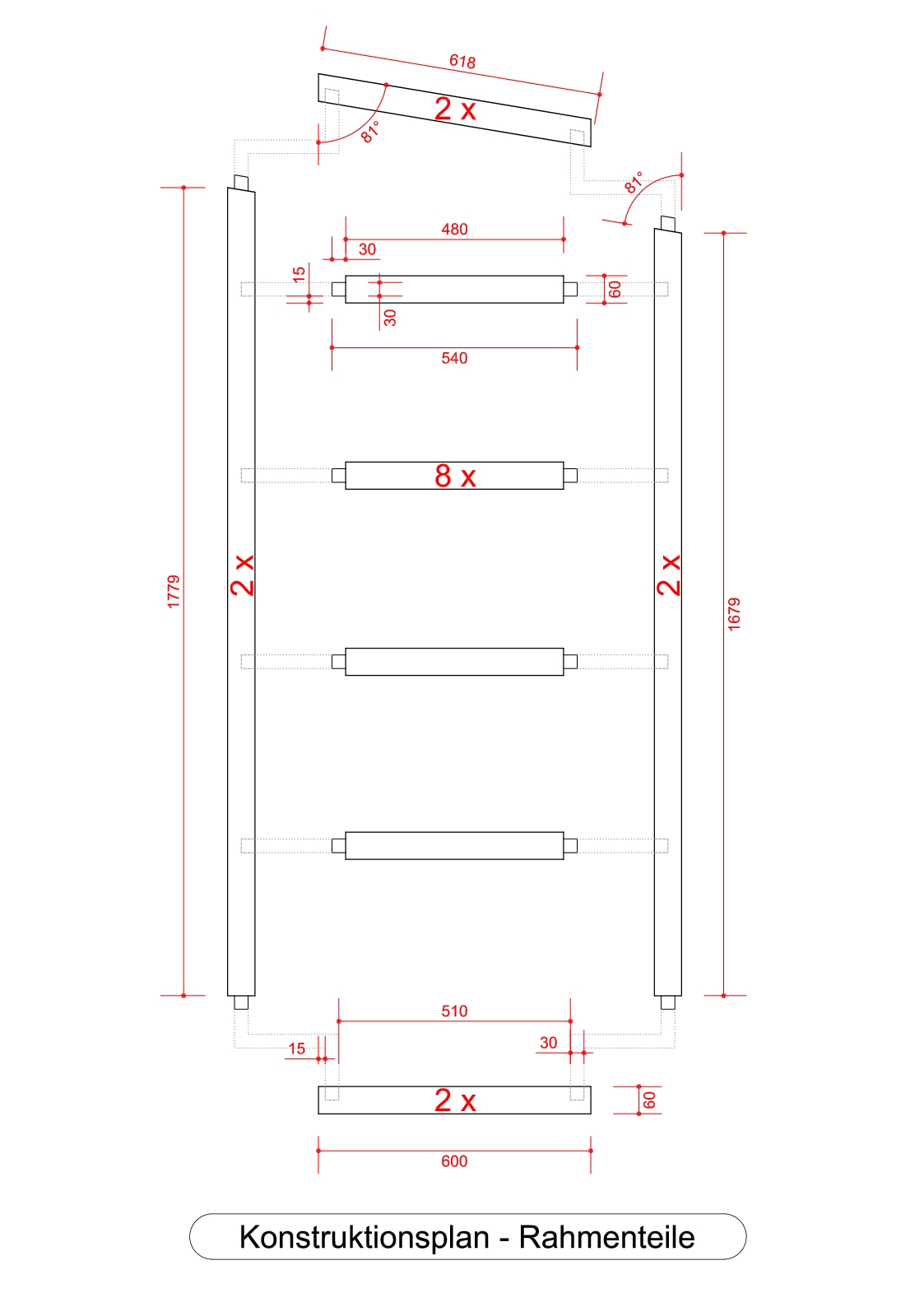 Vorab erst einmal die Zeichnung mit Darstellung der einzelnen Rahmenteile.