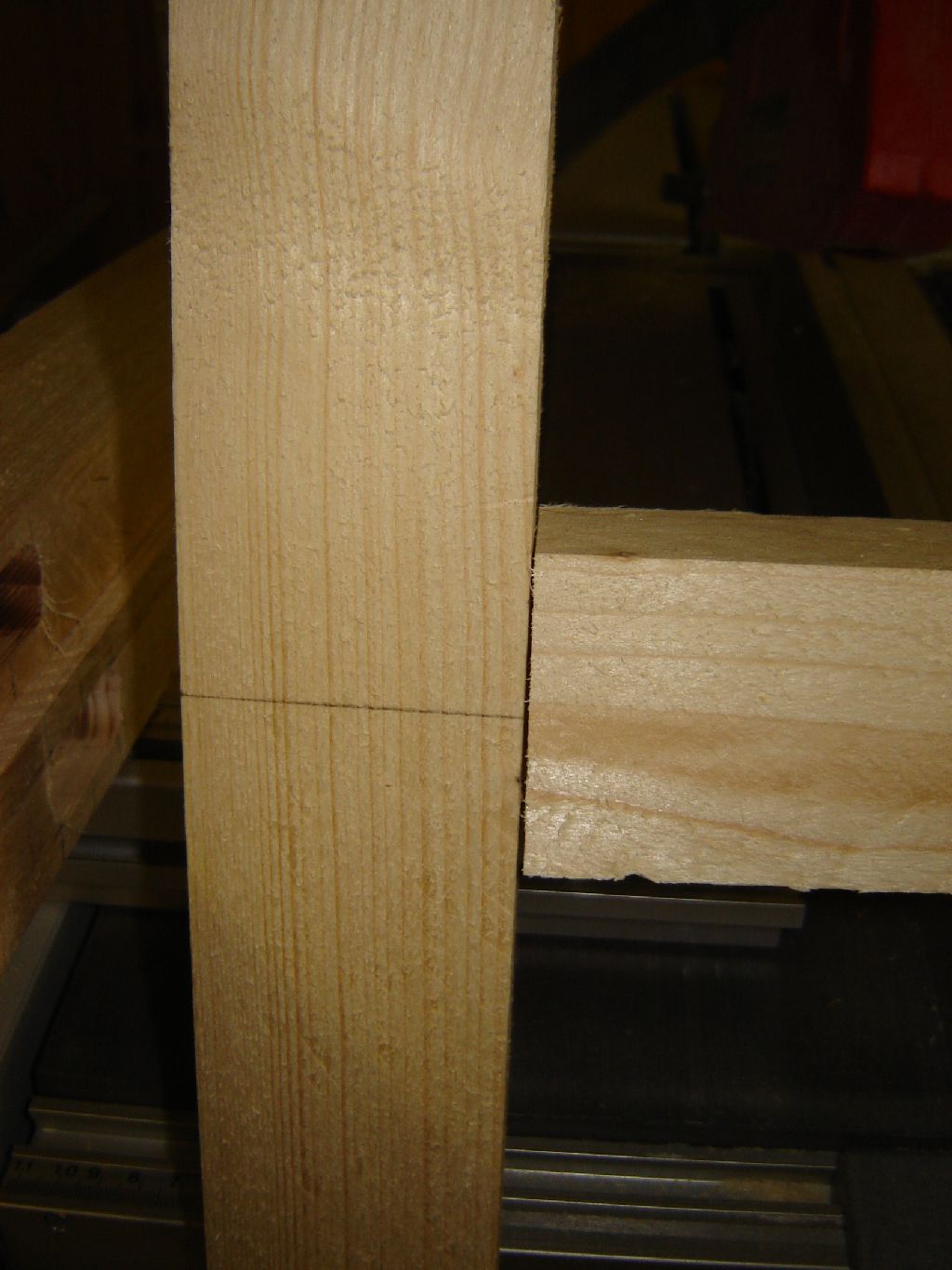 An den senkrechten Rahmenhölzern mussten noch die Zapfen hergestellt werden.