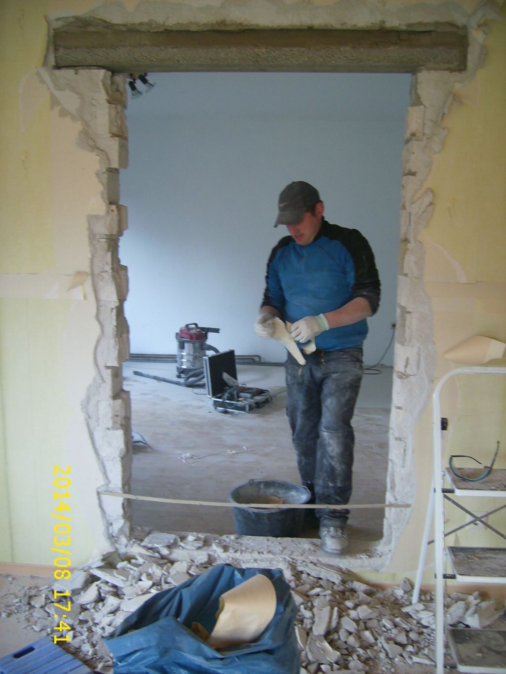Um die Küche das Esszimmer sowie das Wohnzimmer miteinander zu verbinden, war ein Durchbruch vom Esszimmer ins Wohnzimmer erforderlich, des Weiteren mußte die Elektrik erweitert und teils erneuert werden. Werde mal ein paar Fotos angehängen.