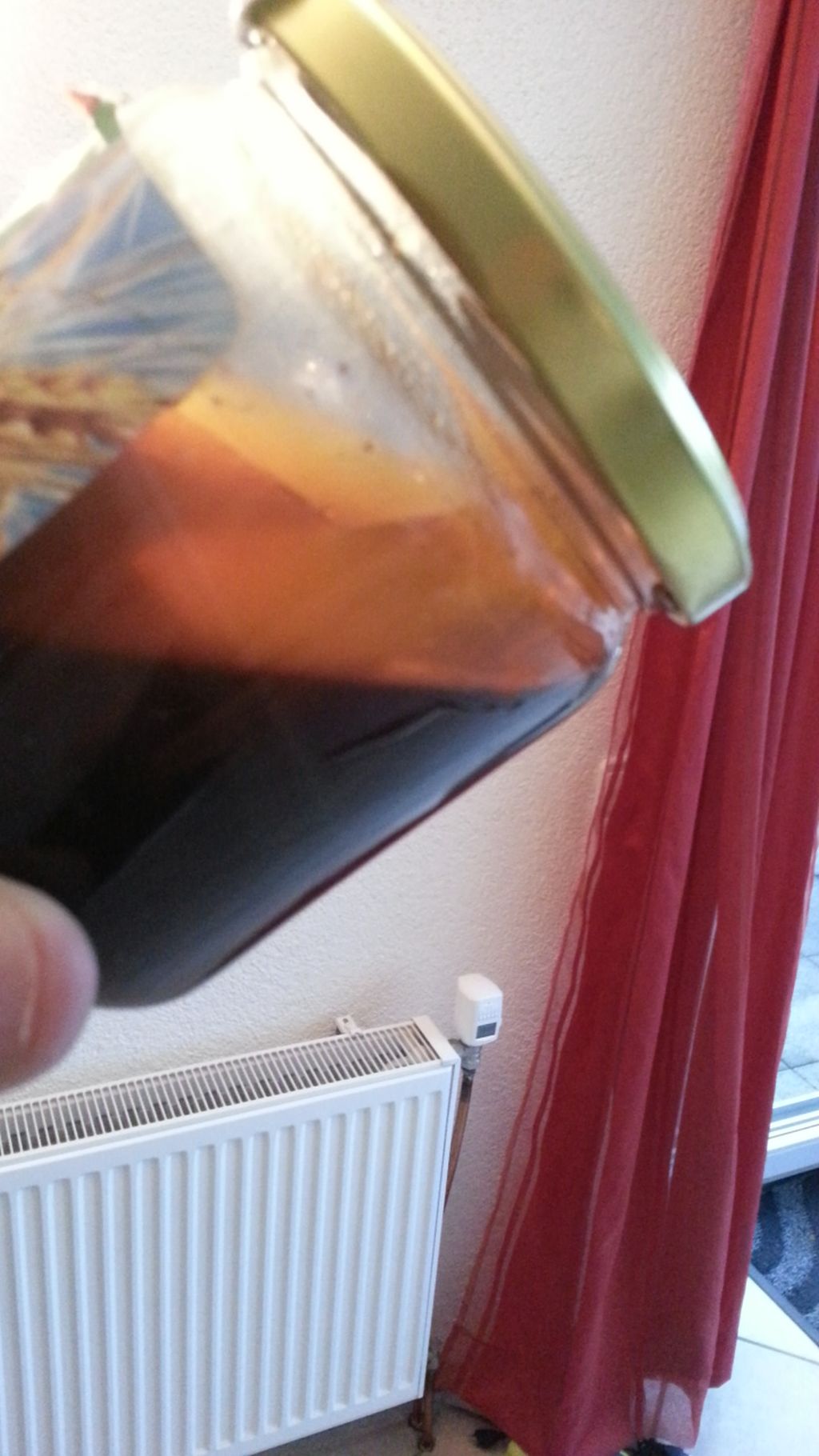 ich habe euch mal ein Bild von meinem Gerstenmalz gemacht, ich bekomme es im Reformhaus , Kostenpunkt ca. 4 €. Es ist ein Demeter- Produkt. Von oben sieht es so aus , es ist zwar abgelaufen , aber wie Honig und der geht auch nicht so schnell kaputt. Ich nehme auf ca. 2- 3 Kilo Mehl drei Esslöffel. Es ist flüssig und von der Konsistenz wie Honig , der Geschmack geht in Richtung süßem Getreide. Ich mache meistens einen Langen Vorteig , über Nacht und gebe es dann an den Rand dazu vor dem Kneten.