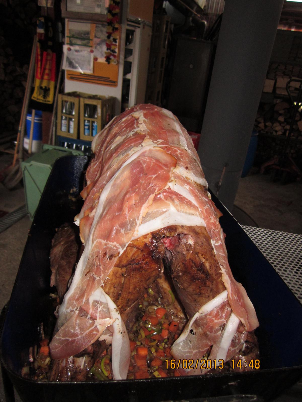 Der Schutz mit dem Speckmantel ist klasse - schützt vor dem Austrocknen und erzeugt einen deftigen Geschmack.