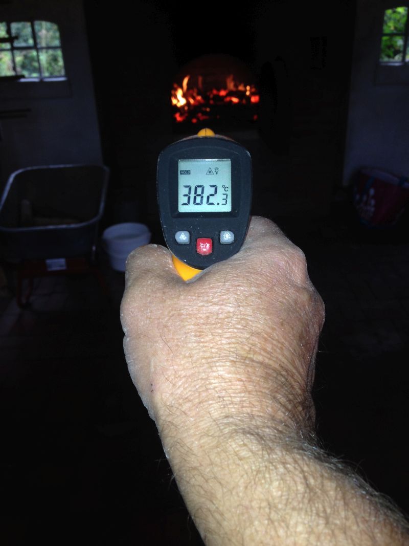 Themperatur oben um die 300 unten nach dem aushudeln um die 240 Grad.leider ist die Hitze innerhalb kurzer Zeit auf unter 200 Grad durchgesackt.