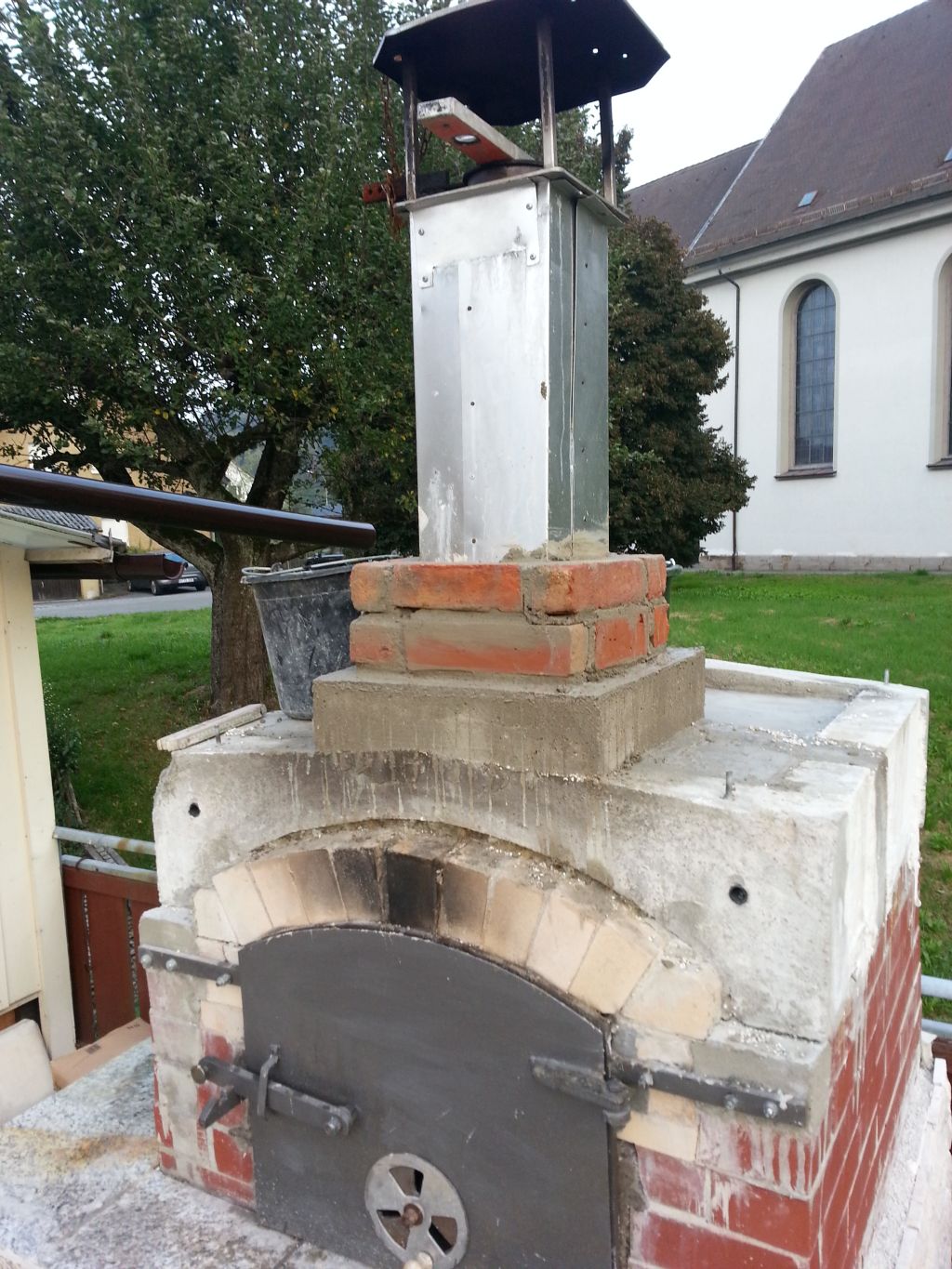 Es wurde dann ein Sockel betoniert und angefangen den Kamin zu verkleiden.