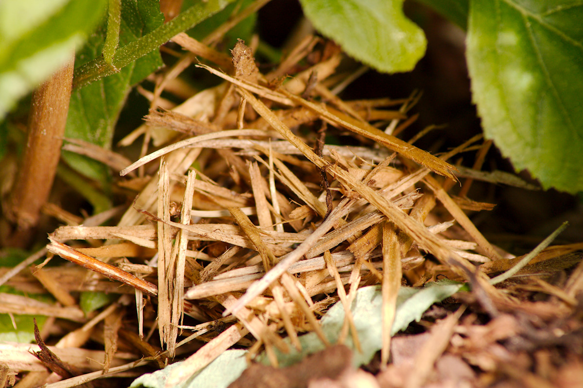 - Zum Glück sind im Rindenmulch rundherum eine Menge kleiner Holzstöckchen!