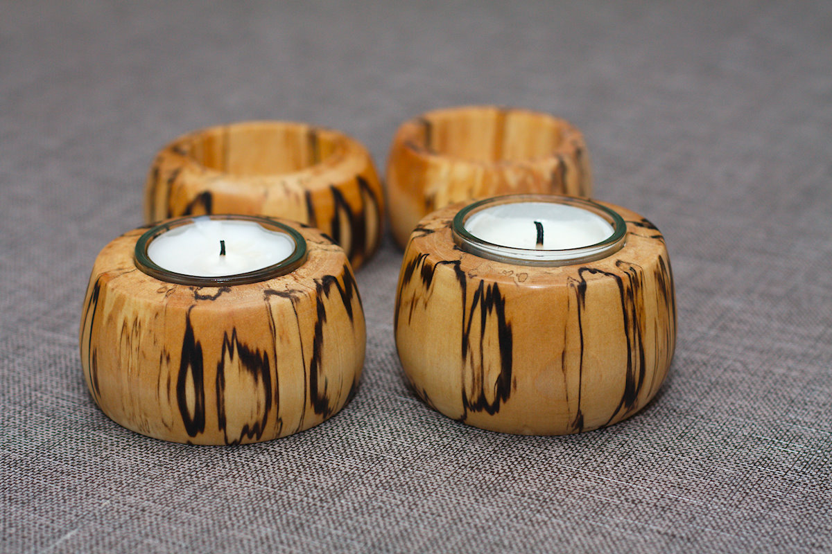 Gestockte Birke gibt richtig schöne Teelichthalter.