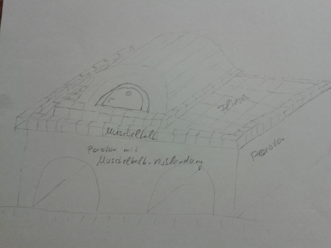 Aus einen Umbau eines freundes habe ich noch ca.50 ca. 80 Jahre alte Hohllochziegel, die eine erste Dämmschicht bilden sollen. Darüber plane ich eine Schicht Vollziegel (liegen bisher als Kantenstein im Garten und kommen raus) als wärmespeicher. Die Backfläche wir sehr wahrscheinlich ausSchamottplatten gelegt, da ich als Geologe zwar zwangsläufig auf Natursteine stehe, Ich aber oft gelesen habe das Granit und ähnliches splittert.
