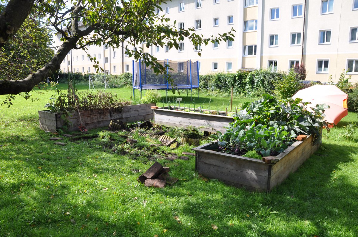 Anbei mal die ersten Bilder. Der HBO soll genau zwischen den Hochbeeten enstehen. Backfläche habe ich zum Abmessen mal ausgelegt. Zwischen Schamottziegeln und Außenziegeln kommten 8 cm Steinwolle als Dämmung. Ergibt eine Grundfläche von 156x117 cm. Die Bodenplatte betoniere ich mit einem 80 cm tiefen.
