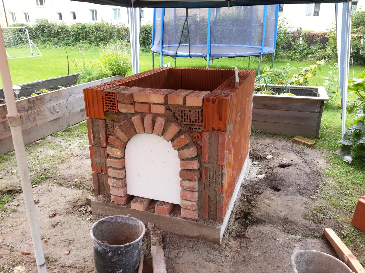 Mauer aufgestellt und Rundbogen gemauert. Siehe Bilder....