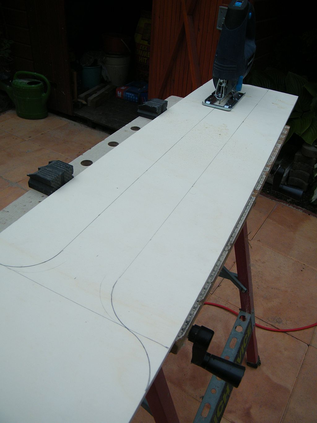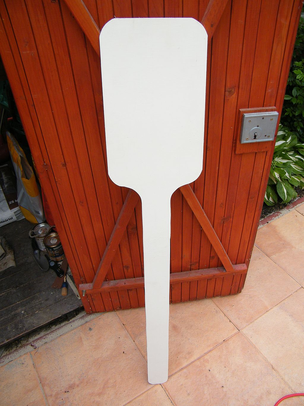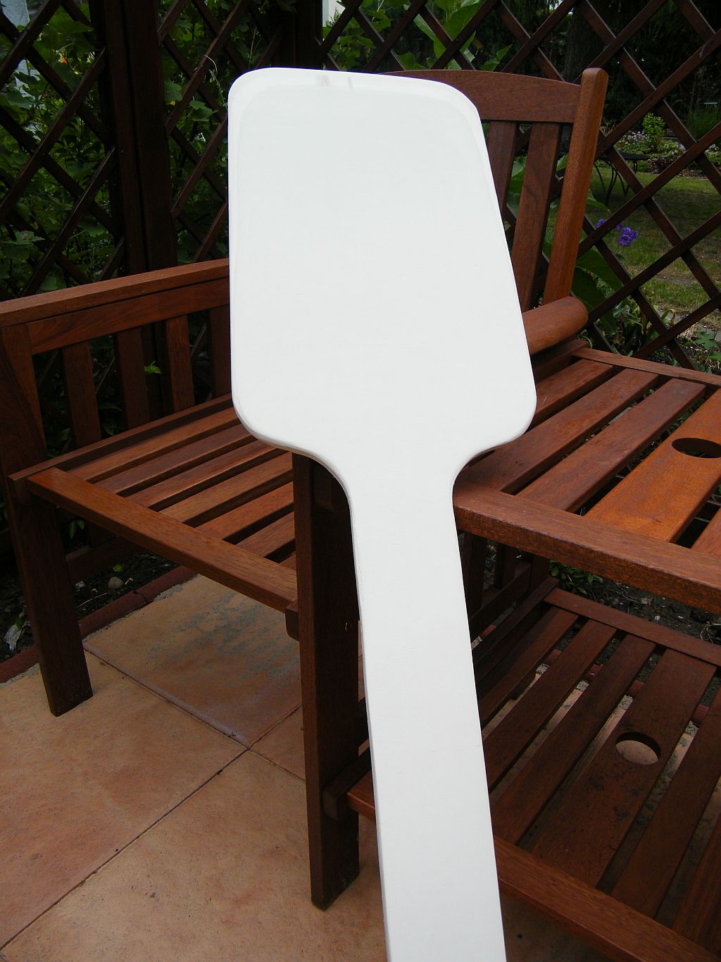 Zuerst angezeichnet und mit der Stichsäge ausgesägt: Fertig ausgesägt: Ab - bzw. angeschliffen: Und fertig: Mal sehen, ob das so hält, wie ich es aus einem Stück gemacht habe. Wenn nicht, muss ich doch noch einen Stiel daran befestigen.